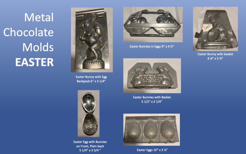Early- and mid-century metal chocolate molds used by professional chocolatiers.